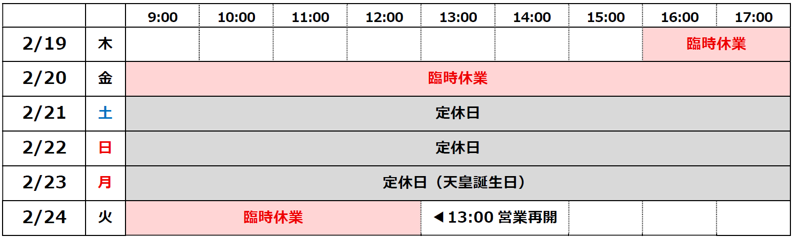 2026年2月19日(木)16:00 から 2026年2月24日(火)13:00 まで
